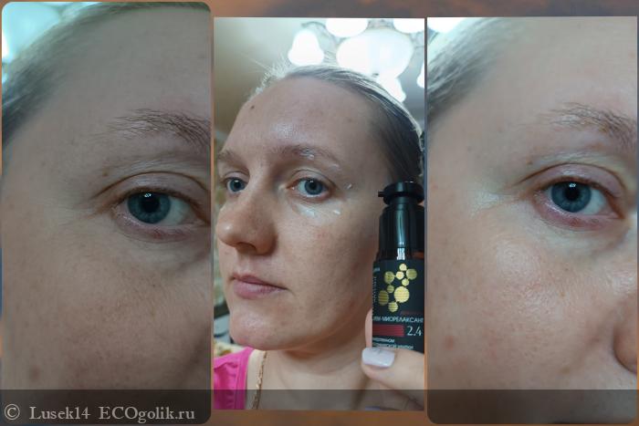 Как сияет увлажнённая кожа. Морщинки разглаживаются. И глубокие морщинки становятся менее заметными, и более мелкие. При использовании крема нет никаких неприятных ощущений, крем не вызывает раздражения чувствительной области вокруг глаз.