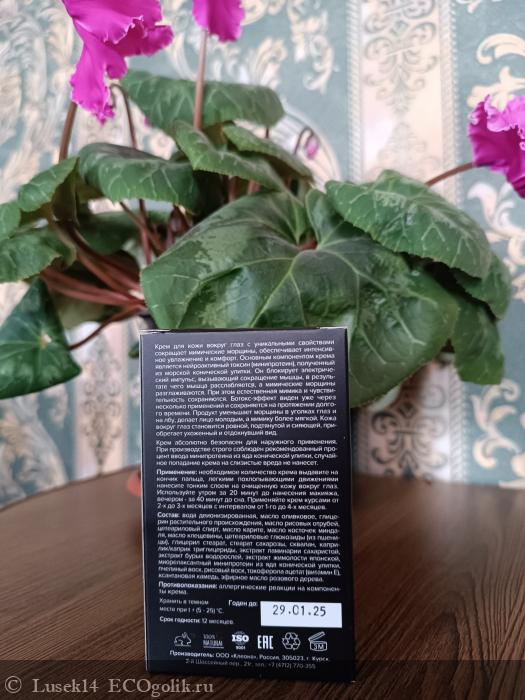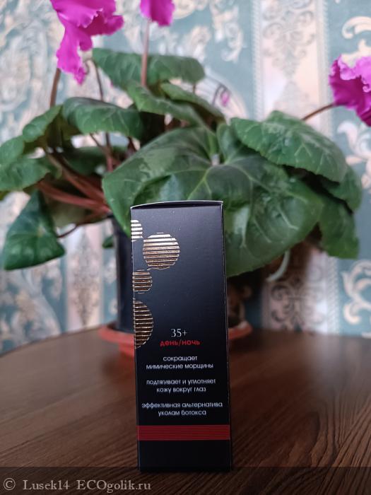 Данный крем указан с эффектом anti -age. На упаковке возраст 35+, но это по потребностям, мне 34, и морщинки вокруг глаз у меня одни из самых заметных уже давно. Поэтому именно антивозрастную линейку я использую лет с 30, курсами, периодически.