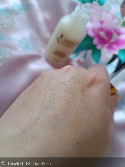 Сыворотка молочно-бежевого цвета. Аромат отдушки приятный, не резкий и не задерживается надолго.
