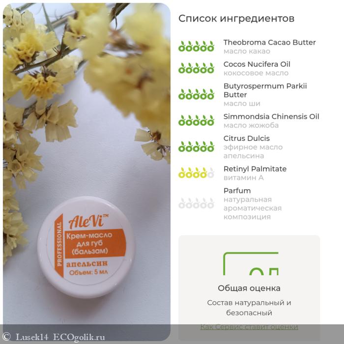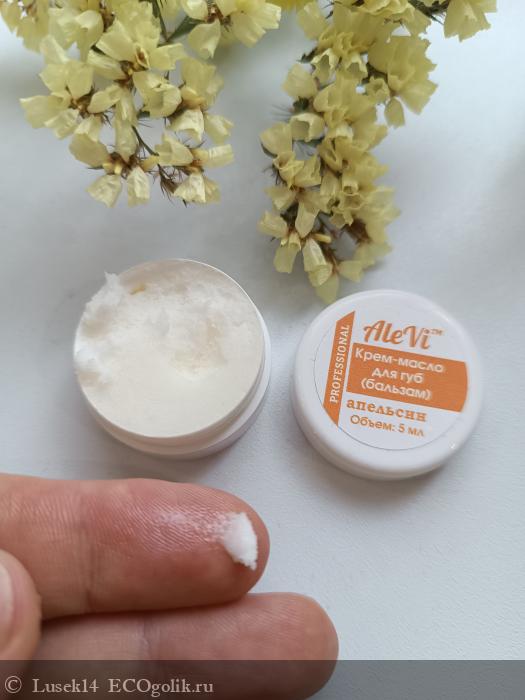 Крем-масло для губ (бальзам) апельсин от бренда AleVi находится в белой непрозрачной баночке-шайбе с откручивающейся крышкой. Размер компактный. Объëм 5 мл.