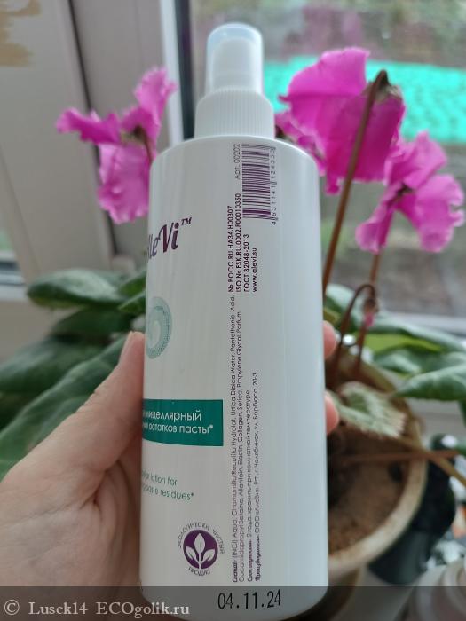 Отличная мицеллярная вода для удаления остатков пасты от бренда AleVi - натуральный состав, бережное очищение, восстанавливает и успокаивает раздражённую кожу, удобный распылитель, доступная цена. В продаже есть данная вода также и в большем объёме - 450 мл.