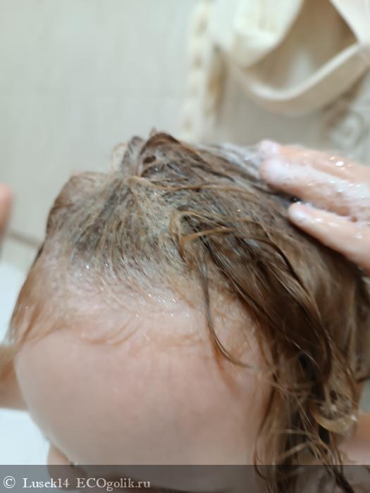 Шампунь даже хорошую пену, которую дочь распределяет по волосам, массирует их. Затем моет их хорошо тëплой водой. Шампунь не раздражает детские глаза, при случайном его попадании в них, глаза промывает водой.
