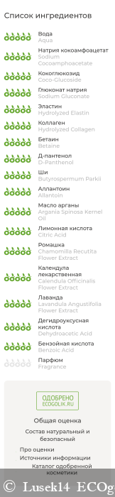Проверку состава данного шампуня на портале Экоголик приведу ТУТ Как видите, состав получил оценку - Одобрено Экоголиком