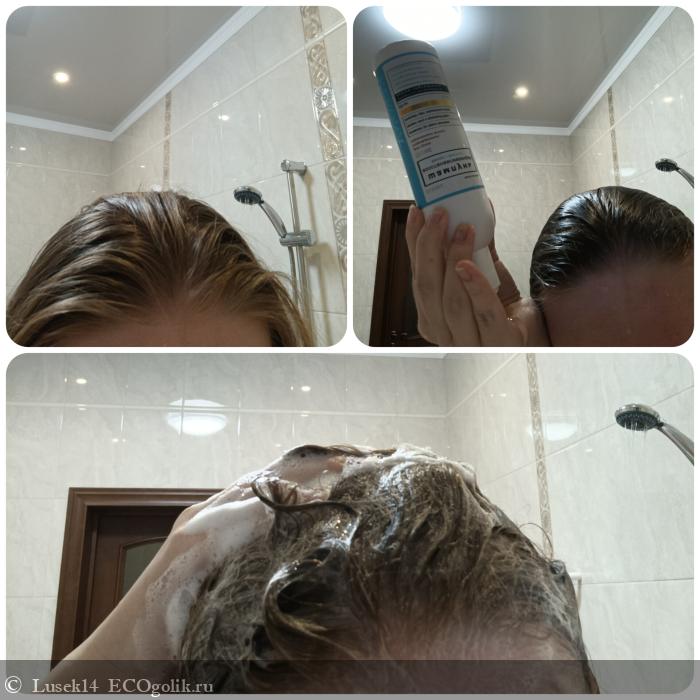 Действие и очищение шампуня мне нравится. Волосы я промываю дважды шампунем. На длину наношу кондиционер. Затем сушу волосы феном.