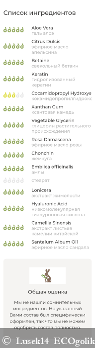 Состав проверим на бесплатном сервисе проверки Экоголика. Результат Тут Я не вижу неодобренных или подозрительных ингредиентов. Впервые вижу выражение "спецефически оформленный состав". Так что полностью состав приведу для наглядности.