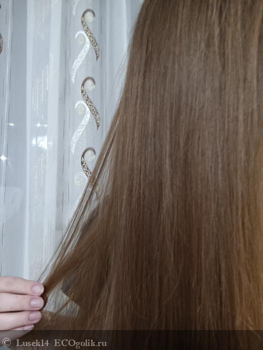 Очень интересно ощущение влажных волос, они как будто стали более тяжёлыми, я даже в начале думала, что плохо промыла волосы. Но при высыхании волос видно, что волосы чистые, гладкие и выглядят опрятно как у корней (где использовался только шампунь), так и по длине.