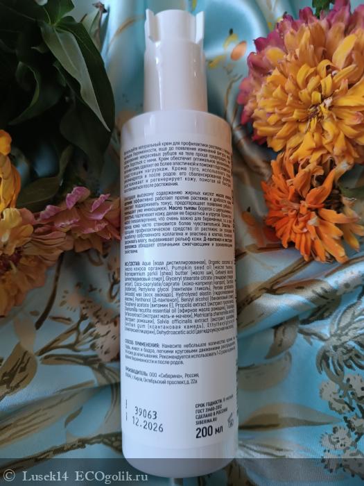 Растяжки. К сожалению, о них я узнала уже после их появления. А, как известно, их легче предотвратить (насколько это возможно), чем пытаться сделать их хотя бы менее заметными. Растяжки чаще всего появляются во время беременности, либо при переходном возрасте у девочек, когда тело приобретает формы. Ещë могут быть при резком наборе веса и других причинах, перечислять не буду. У меня растяжки появились во время первой беременности, на тот момент я о них ничего не знала и не пользовалась специальными средствами для предотвращения растяжек. После их появления я активно ухаживала за кожей, со временем они посветлели и не стали бросаться так сильно в глаза. При следующих беременностях я уже пользовалась специальными средствами от растяжек. Также я использовала их и при похудении, для того, чтобы кожа подтягивалась равномерно, была ухоженной. Сегодня мой отзыв на натуральный крем "Профилактика и коррекция растяжек" для беременных и кормящих мам с эластином" от бренда SIBERINA.