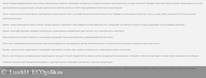 Это масло отлично подходит для парного массажа - масло приятно на коже, без липкости и жирности, а его аромат пробуждает романтический лад, при этом он не резкий, не отвлекает и не надоедает. В общем, в этом плане для нас оказалось идеальным.