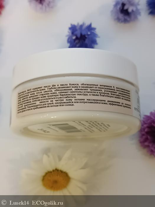 "Крем-масло содержит масло Ши и масло Кокоса, обогащенные витамином Е, и эффективно восстанавливает упругость и эластичность кожи.