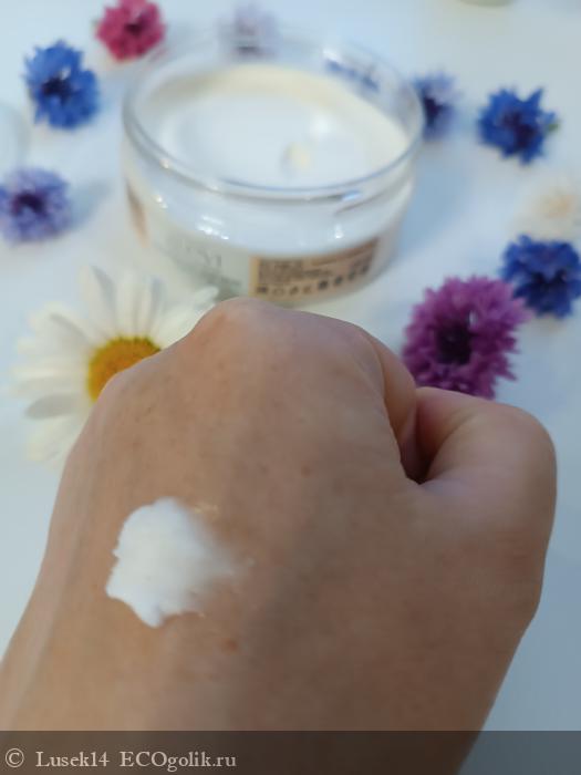 Крем-масло приятно распределяется по коже, без особых усилий и растяжений. Смягчает и увлажняет кожу, хорошо еë питает. Очень нравится ощущение бархатной кожи после впитывания (минут 10-15 на моей коже).