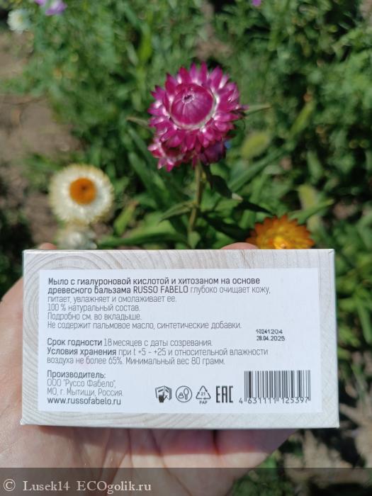 Сегодня отзыв на мыло с гиалуроновой кислотой и хитозаном на основе древесного бальзама Russo Fabelo.