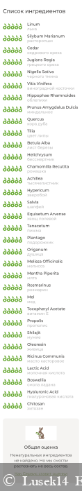 Все распознанные ингредиенты относят к натуральным, не распознаны ещë несколько растительных компонентов и дигидрокверцетин.