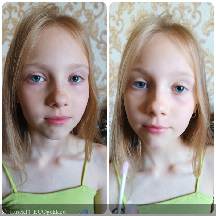Блеск для губ равномерно наносится, не скатывается в складках губ и, если есть шелушения, то он их скрывает. Цвет смотрится нежно и гармонично. Ещë нравится, что блеск не липкий. Он отлично увлажняет, ухаживает за нежной кожей губ. Цвет держится до перекуса.