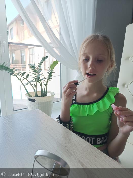У дочек свои личные блески "Розовый грейпфрут" от ChocoLatte, которыми они с удовольствием пользуются как дома, так и на выход, и берут с собой в поездки.