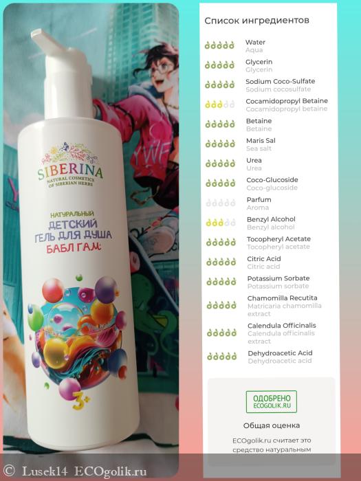"Детская кожа очень нежная и чувствительная, поэтому мы используем только натуральные компоненты и создаем безопасные, эффективные и гипоаллергенные средства. Детский гель для душа от Siberina – это бережный уход для ежедневного применения: без отдушек, красителей и парабенов. Наш мягкий гель идеально подходит для ухода за чувствительной кожей ребенка."