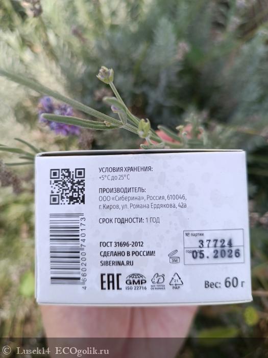 Упакован в картонную коробочку с рисунком цветов лаванды. На ней есть также наклейка - защита от вскрытия.