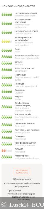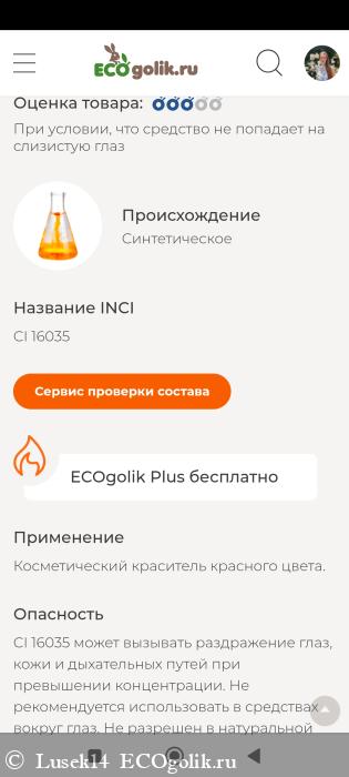 В составе есть один не одобренный компонент - пищевой краситель красный. При превышении концентрации его в составе и попадании на слизистые может вызвать раздражение глаз. Если же средство не попадает на слизистую, то данный компонент будет оценён на 3.