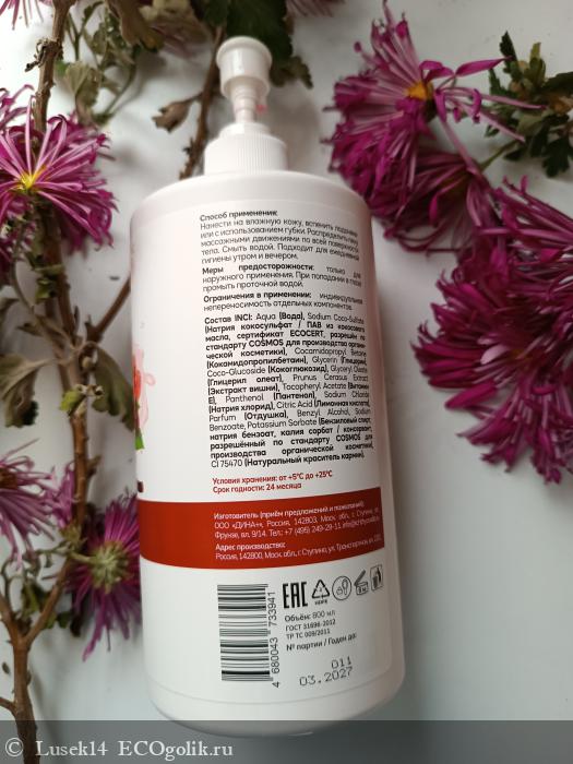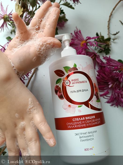 Гель для душа с ароматом вишни и натуральным составом мне понравился бережным очищением и сладким вишнëвым ароматом. Объем данного флакона большой, семейный, для нашей семьи он идеально подходит, расходуется раньше, чем проходит срок годности после вскрытия. С таким гелем для душа дети также любят мыть руки, а его бережная формула и выгодная цена позволяет не отказывать им в этом удовольствии