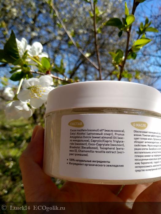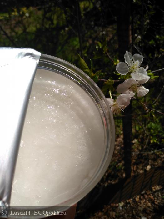 Масло полностью для тела я не стала применять. Оно всё-таки напитывает кожу сильнее, чем когда я просто пользовалась чистым кокосовым маслом. И от кристалликов я не стала избавляться. Баттером я пользуюсь в качестве питательного крема для рук - наношу его небольшое количество на сухую кожу на ночь. Баттер кокоса хорошо смягчает и увлажняет кожу рук. Ещё довольно приятно делать/получать массаж с баттером кокоса - используем его на сухой коже, делаем приятный расслабляющий массаж и наслаждаемся ароматом (ну и позже идём смывать это великолепие в ванной, чтобы потом не блестеть