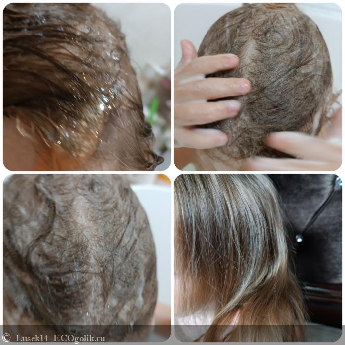Применение: нанести на влажные волосы, вспенить, промыть водой. Если шампунь попал в глаза, то глазки тоже нужно промыть водой.