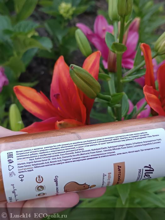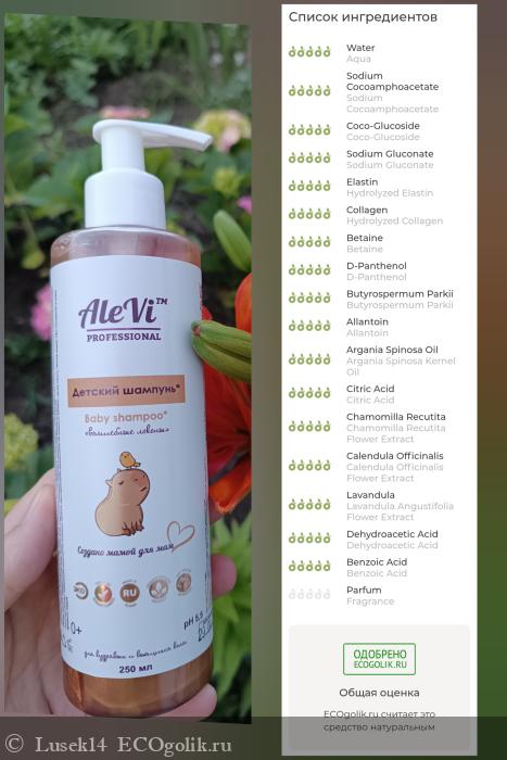 Шампунь не содержит сульфатов, силиконовых добавок, парабенов и искусственных красителей, в связи с этим шампунь не сушит чувствительную кожу ребенка и не раздражает глаза.