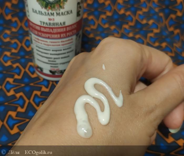 Сама маска густая, кремовая. Аромат так себе не из приятных, напоминает лечебное средство. Она довольно густая, не растекается и не стекает с головы, это большой плюс.