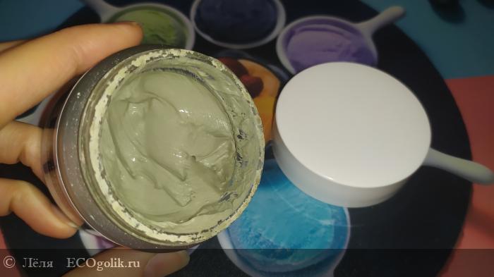Баночка с маской имеет объем 50 мл. Состав маски маслянисто – глиняный. Аромат приятный, на коже после нанесения не чувствуется.