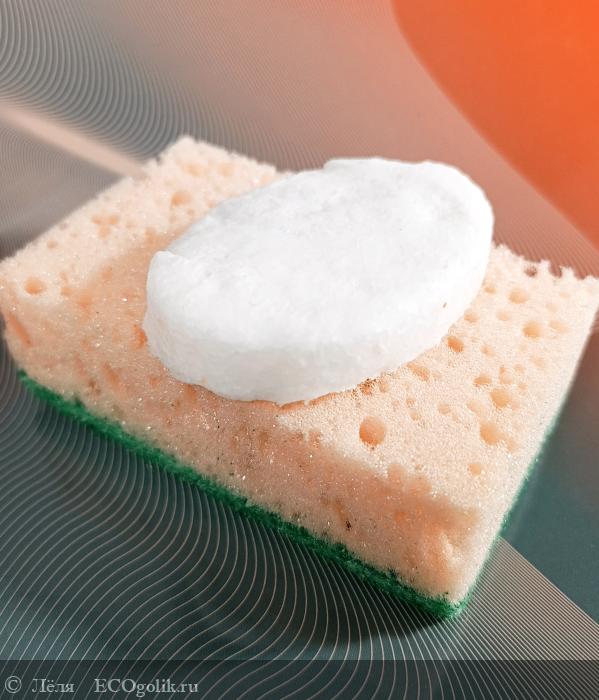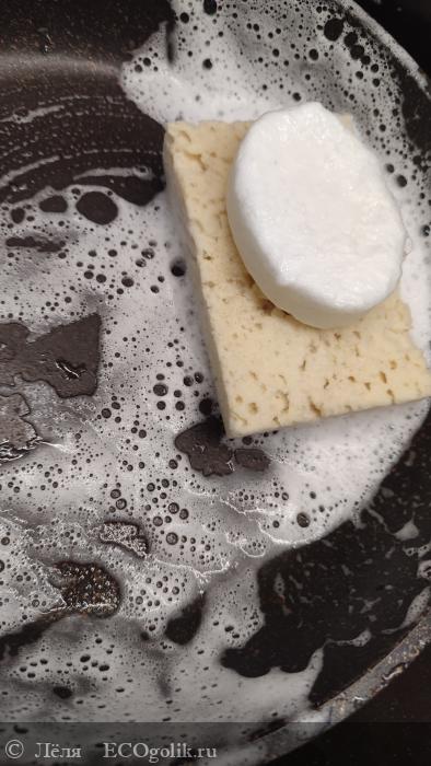 Применять очень легко, необходимо смочить брикет и нанести на губку. Всего пару раз провести не более, потому что оно очень концентрированное. Сразу дает много пены. Я пользуюсь этим средством без перчаток, поскольку оно не сушит кожу, а состав полностью натуральный. После мытья посуды нет стянутости на коже рук.