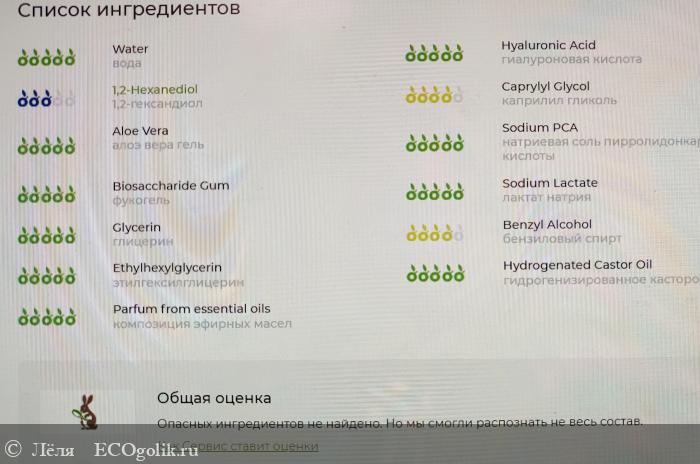 При проверке состава опасных компонентов не найдено. Есть один сомнительный – 1,2-Генсандиол, служит в качестве растворителя. Имеет синтетическое происхождение, в натуральной косметике допустим.