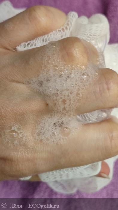 Хорошее пенообразование для натурального средства. При купании ребенка капаю мыло на мочалку, оно хорошо вспенивается. Нежно очищает детскую кожу, без сухости и стянутости. Ушли от детских кремов благодаря мылу с натуральными составами. Они мягко работают и при этом нет сухости и раздражения.