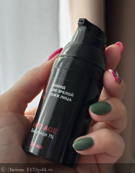 В уходе сейчас я предпочитаю активные компоненты, особенно меня интересует всё антивозрастное)))) И меня прямо очень сильно радуют средства с бакучиолом, т.к. ретинол я боюсь применять из-за очень чувствительной и аллергичной кожи, а бакучиол считается "природным ретинолом" и дружественнен к моей коже. Вот и данный флюид я решила взять именно из-за этого компонента)))