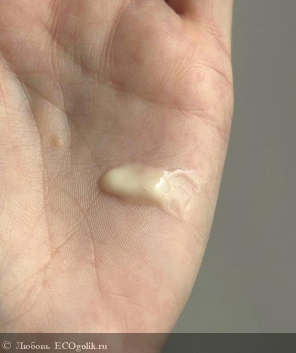 Сам флюид как лёгкий, негустой крем. Он очень нежный, однородной текстуры, неплотный.