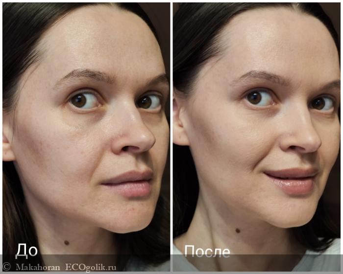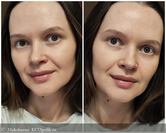 Визуально выравнивается не только тон, но и рельеф кожи. Эффект от продукта мне очень понравился, это при том, что это совершенно легчайшая текстура. А работает на уровне с bb кремами.