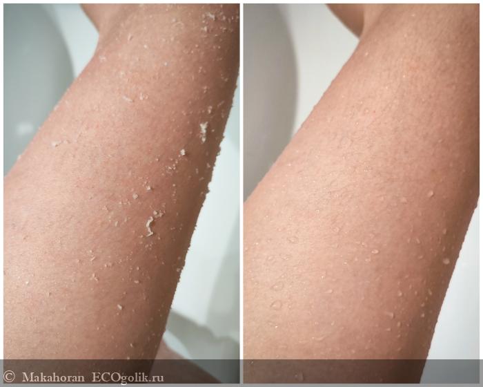 Смыв скраб, кожа остается комфортной, очень приятной и гладкой на ощупь. Первые минуты может быть слегка розоватый оттенок, но это зависит от того, насколько интенсивно будет использоваться продукт.