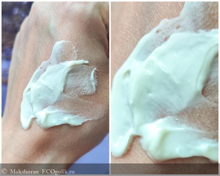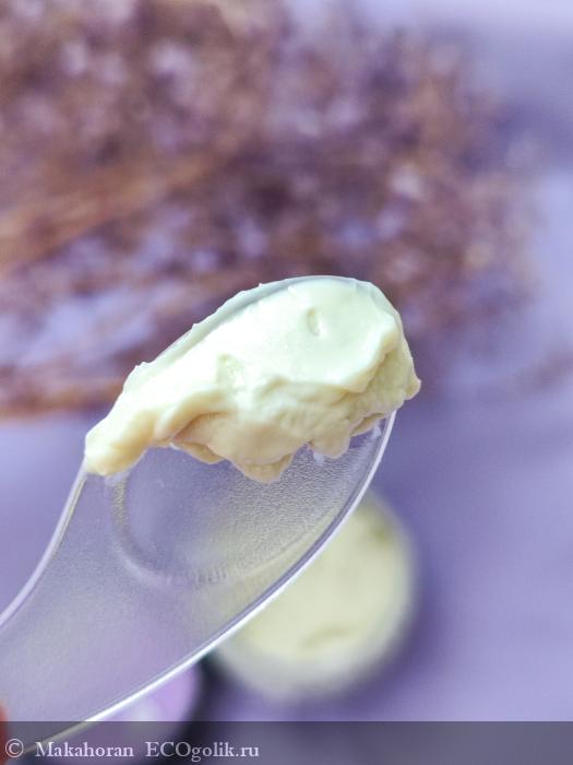 Консистенция: густая, кремовая, средство не растекается на поверхности, хорошо держит форму. В баночке текстура средства чем-то напоминает пудинг