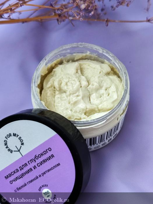 В последнее время я пользовалась только тканевыми масками и очень соскучилась по кремовым, поэтому решила попробовать очищающую маску с белой глиной и ретинолом от бренда Brand for my son.