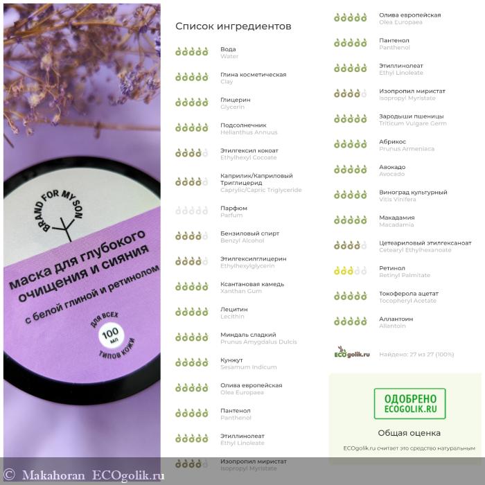 Очищающая маска от Brand for my son - это приятная кремовая текстура, небольшой расход, удобное нанесение и хорошее очищение кожи, а ещё натуральный и безопасный состав.