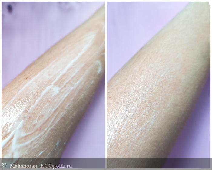 Средство имеет нежную и довольно лёгкую консистенцию, поэтому распределяется по поверхности быстро и также незамедлительно впитывается в кожу.