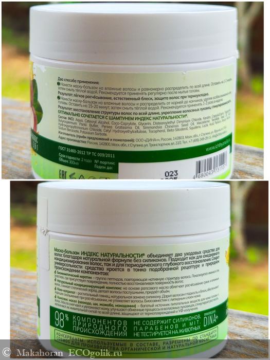 Поскольку в данный момент я пользуюсь шампунем от Индекс Натуральности, то и в качестве дополнительного ухода выбрала маску-бальзам от этого же бренда.