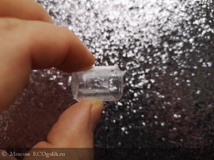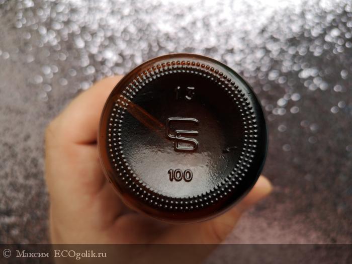 Упаковка из затемненного стекла, по периметру донышка аж три (!) кольца противоскользящего рубчика