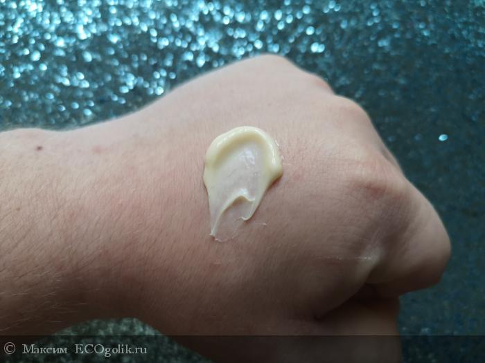 Когда этот крем наносишь, он не впитывается особо и длительное время ощущается как крем-перчатка на коже. Продукт достаточно плотный , чуть маслянистый и рука ощущается как в варежке внутри этого крема после нанесения . Тактильно он не противный, не отталкивающий, просто он сверху, не впитывается и из-за этой особенности вытекает тот факт что крем не увлажняет и не питает от слова совсем(о накопительном эффекта даже речи не идет))