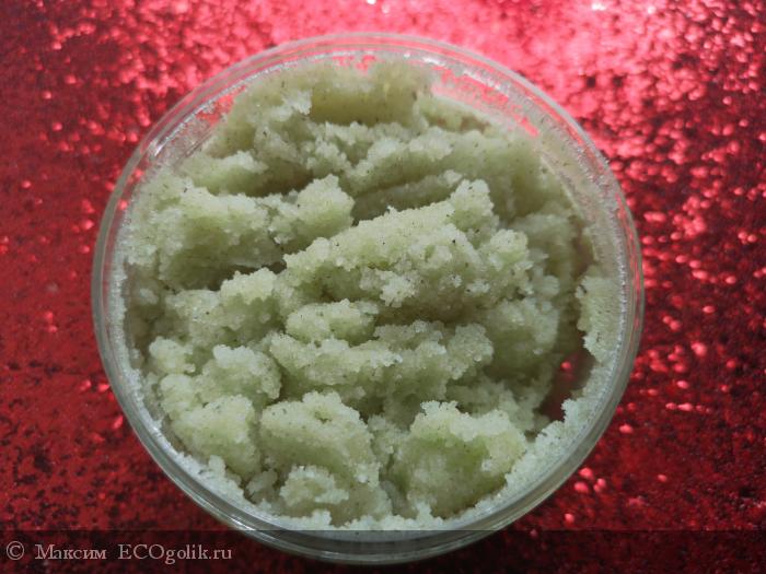 Скраб не стекает с кожи, несмотря на некрупные частицы соли он не сразу растворяется на влажной коже, позволяет поработать им столько сколько потребуется.