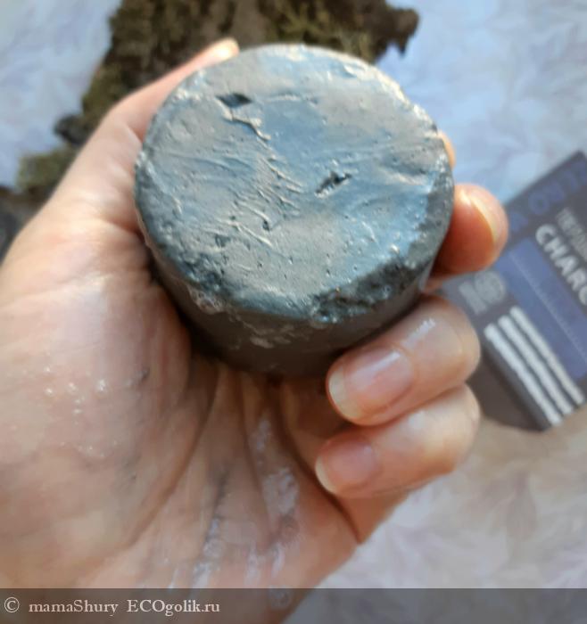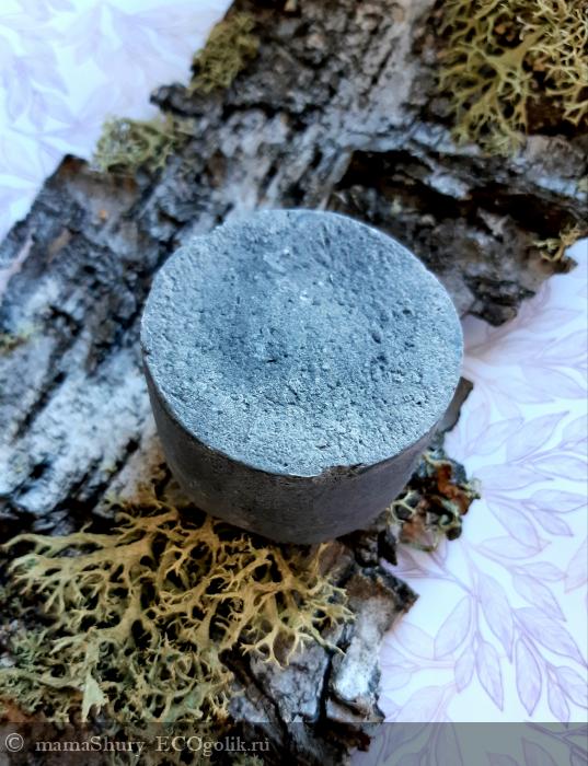 Сам шампунь напоминает кусочек мыла графитового цвета.