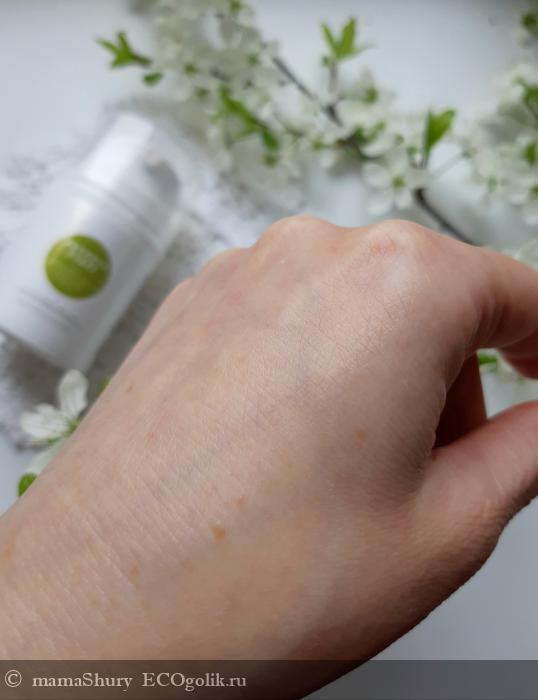 Крем прекрасно впитывается, оставляя на месте нанесения эффект припудренности, на фото это сложно передать, но кожей это легко почувствовать.