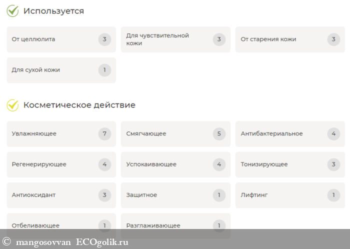Плюс, расширенный анализ показывает свойства смеси, как масла для тела: