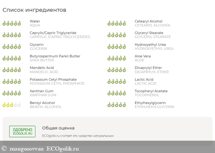 Гидрокислоты не всегда получают из ягод и фруктов, так, например в данном креме используется самая мягкая Миндальная AHA-кислота, которая работает на поверхности эпидермиса и насыщает кожу влагой, а также Молочная - аналогично увлажняющая, успокаивающая и оказывающая лёгкое отшелушивающее действие. Производитель отмечает, что крем на их основе подходит "для ежедневного ухода за любым типом кожи, включая чувствительную и нетолерантную к кислотам, а также склонную к акне". Всё дело в их деликатном воздействии