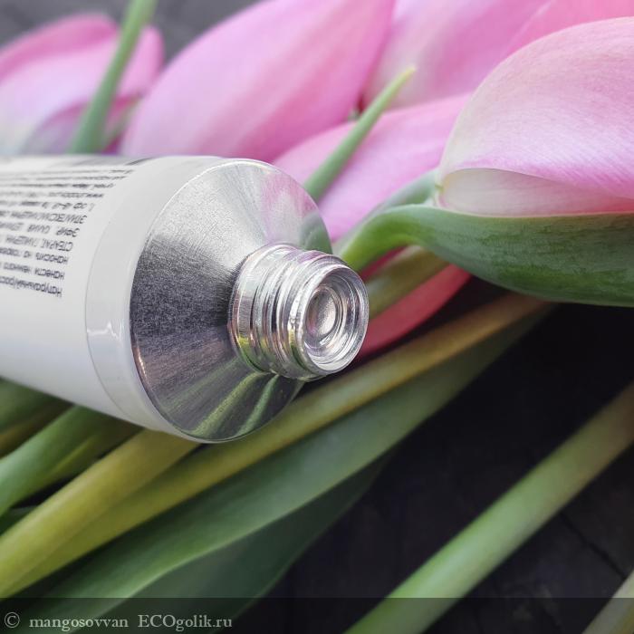 Текстура крема на первый взгляд кажется плотной, но при контакте с кожей как будто тает, быстро впитываясь и не оставляя следов. Для комфортного распределения требуется совсем небольшое количества средства, что делает его расход очень экономным