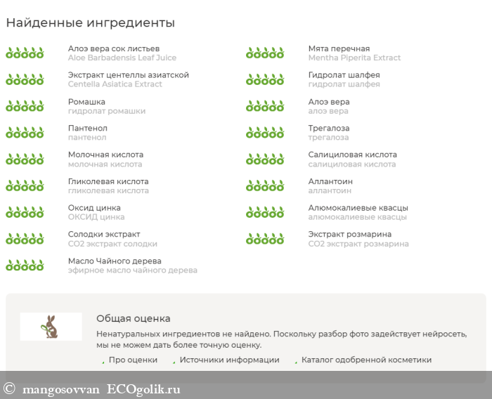Которые сами по себе обладают успокаивающим и лёгким антисептическим действием. Одно время я пробовал использовать одни лишь гидролаты после бритья, здесь же они дополнены ещё другими компонентами, которые все вместе и по отдельности проходят проверку от Экоголика с максимальной оценкой относительно натурального происхождения ингредиентов