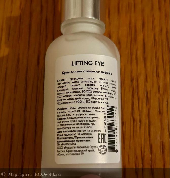 С возрастом учишься выбирать косметику с учетом потребностей кожи и, конечно, не забывать про антивозрастной уход. Крем лифтинг для век LIFTING EYE MATSESTA – это не только натуральный, но и действенный уход против морщин, потери упругости, других неблагоприятных возрастных изменений.