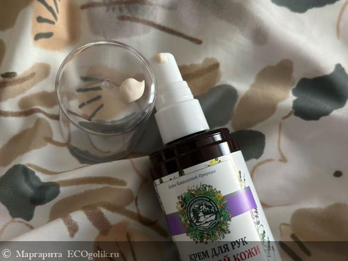 Запах имеет травянистый характер. Но на руках не держится. Вот что значит натуральные эфирные масла, а не отдушки. Текстура крема для рук – выраженно питательная, увлажняющая, восстанавливающая кожу рук.